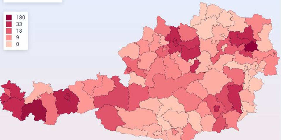 Die interaktive Karte zeigt Ihnen, wie viele Corona-Fälle Ihr Bezirk aufweist.