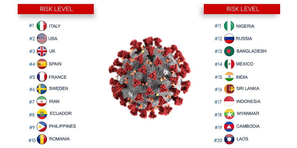 Eine Statistik zeigt: Italien ist nach wie vor das Land mit dem größten Ansteckungsrisiko. Österreich ist nicht unter den Top 20.