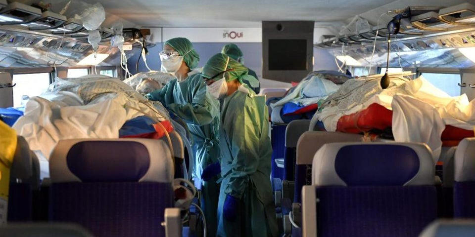 In Frankreich wurden TGV-Garnituren in Sonderzüge für Coronavirus-Patienten umgerüstet. In den umfunktionierten Schnellzügen wurden Patienten nach Bordeaux, Libourne, Pau und Bayonne gebracht. Insgesamt sollen am Wochenende 48 Intensiv-Patienten mit zwei medizinisch umgerüsteten Zügen aus Mülhausen und Nancy verlegt werden, wie die Gesundheitsbehörde in Bordeaux mitteilte. Bereits zuvor waren 20 Kranke erstmals mit einem medizinisch umgerüsteten TGV-Schnellzug nach Westfrankreich gebracht worden.