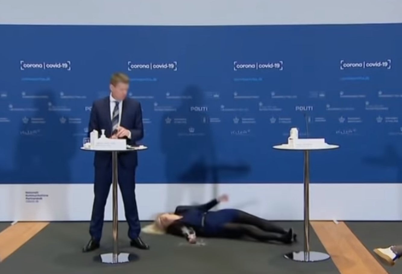 Es war eine Pressekonferenz wie alle anderen, doch dann gerieten alle in Aufruhr. Denn die dänische Gesundheitssprecherin, Tanja Erichson, verlor plötzlich das Bewusstsein und fiel zu Boden.