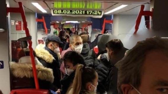 Ein geteiltes Foto auf der Facebook-Seite des Gastronomie Club Wien sorgt derzeit für Aufregung im Netz. Auf dem Bild vom 08. Februar ist ein voller Zugabteil zu sehen, in dem die Menschen zusammengepfercht auf engstem Raum stehen.