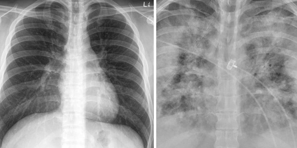 Wie groß der Unterschied punkto Lungenschäden zwischen Geimpften und Ungeimpften sein kann, zeigen zwei Röntgenbilder: