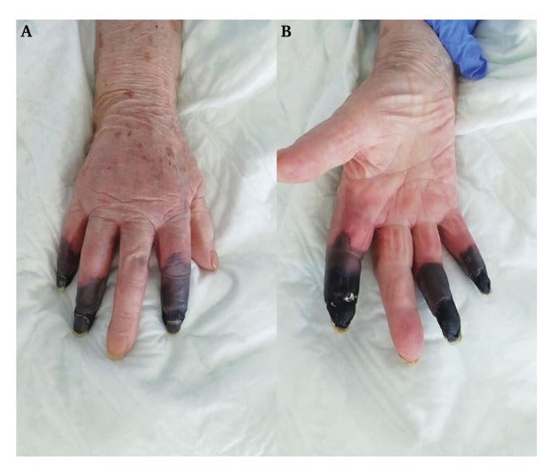 Nach einer Corona-Infektion wurden drei Finger einer 86-jährigen Corona-Patientin schwarz. Daraufhin mussten die Ärzte der Italienerin die Finger abnehmen.