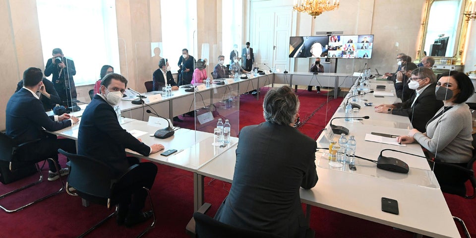 Vor Sitzungsbeginn im Kanzleramt erwiesen sich die meisten Teilnehmer als wortkarg. Lediglich Wirtschaftskammer-Präsident Harald Mahrer ließ sich ein Statement entlocken. Er plädierte für eine "breite, faire Öffnung" mit entsprechenden strengen Sicherheitskonzepten, wobei es ihm nicht so wichtig sei, ob diese am 17. oder 19. Mai losgehen solle, wie er auf Nachfrage meinte: "Uns ist es wichtig, dass es vor Pfingsten stattfindet." Die Gastro-Sperrstunde wünscht er sich jedenfalls um 22 Uhr, damit sich "zwei gute Runden am Abend" in den Lokalen ausgehen.