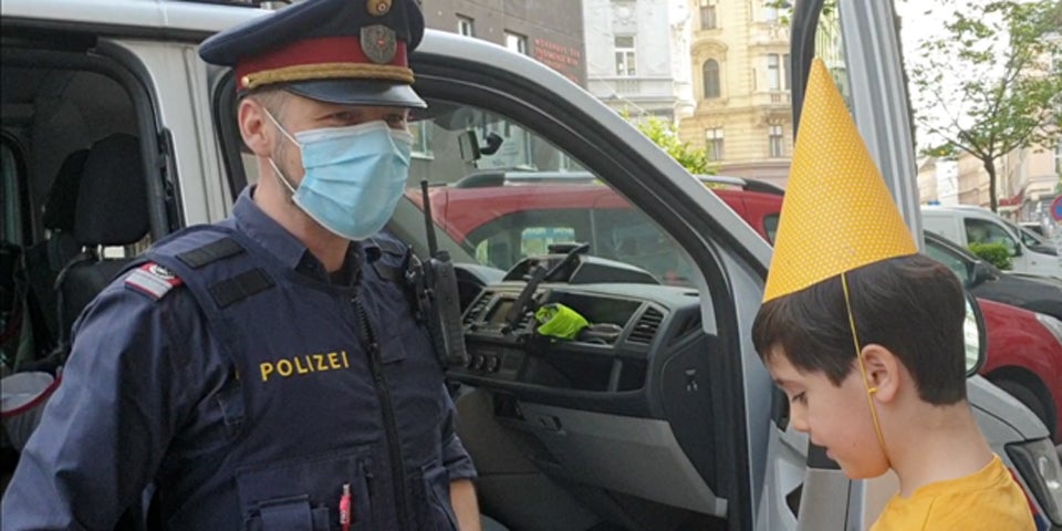 Ein Bub aus Wien musste wegen der Coronavirus-Beschränkungen seinen 10. Geburtstag ohne seine Freunde feiern – Ein Polizist erfuhr davon und überraschte den Burschen.