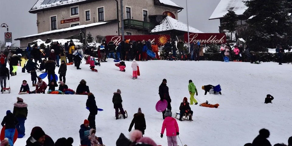 Eine Rodelwiese gesperrt, auf anderer wird kontrolliert.