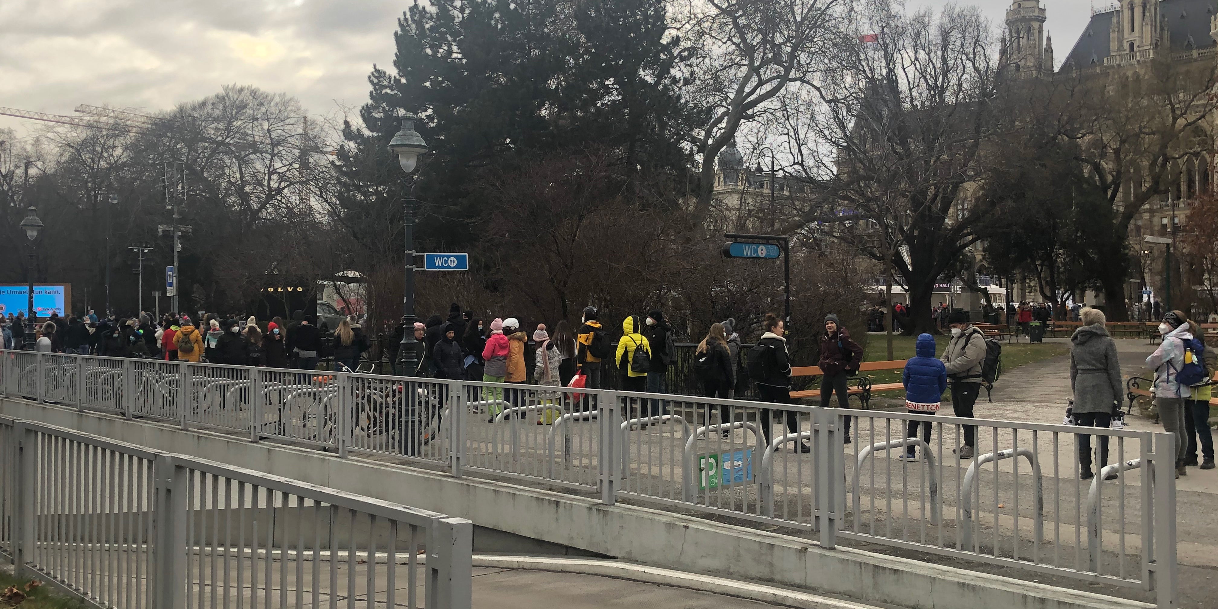 Erst am Freitag sorgte eine überfüllte Wiener Innenstadt für Schlagzeilen. Menschenmassen drängten sich ohne Abstand und Maske über den Wiener Kohlmarkt - und das trotz Lockdown. Jetzt gibt es den nächsten Ansturm. Am Sonntag stürmten Hunderte den Wiener Eistraum am Rathausplatz. Und jene, die noch nicht am Eis standen, blieben hartnäckig und standen in einer schier endlosen Schlange, die sich noch am Rathauspark entlang zog. Aber eines muss man festhalten: die Menschen bewiesen nicht nur eine Engelsgeduld, sondern auch Disziplin. Der Großteil trug Maske und hielt Abstand.