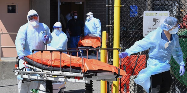 Warnung. Bürgermeister Bill de Blasio warnte, dass die Spitäler bis Sonntag 3,3 Millionen N95-Schutzmasken benötigen und 300 Beatmungsgeräte. Es gibt Engpässe beim Abtransport der Toten. Viele Klinken verladen die Toten kurzerhand in Kühllastwagen.