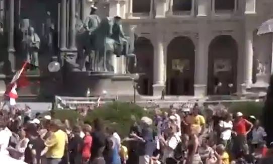 Im ersten Bezirk wird gegen die verpflichtende Impfung von Kindern demonstriert. Nina Proll hatte auf Instagram die Veranstaltung im Vorfeld propagiert.