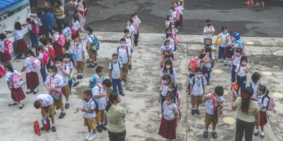 Mitte November 2021 hatten im Rahmen eines Pilotversuchs 100 der mehr als 61.000 öffentlichen Schulen für zwei Monate geöffnet. Sie befanden sich an abgelegenen Orten und durften eingeschränkten Präsenzunterricht anbieten. Die Corona-Pandemie hat die Armut vieler philippinischer Familien weiter verschlimmert. Millionen Eltern wissen nicht, wie sie den Schulbesuch ihrer Kinder bezahlen sollen. Die Regierung kündigte daher finanzielle Hilfen von bis zu 4000 Pesos (knapp 71 Euro) an.