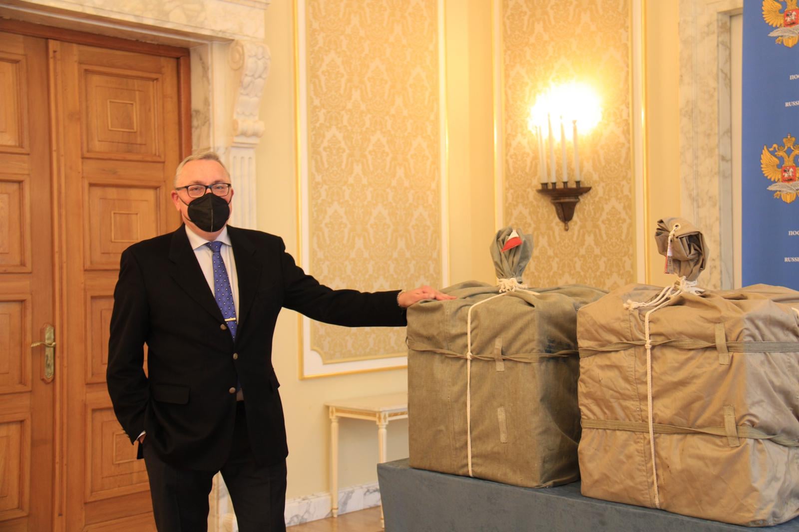 Ein Foto, das auf Sozialen Netzwerken verbreitet wurde, zeigt Botschafter Dmitri Ljubinski mit zwei großen Paketen. Ein Sprecher der Botschaft bestätigte gegenüber der APA, dass der Impfstoff an alle Mitarbeiter der russischen Vertretungen geht. "Wir sind Impfpatrioten", sagte Sprecher Lev Terekhov. Geimpft werde durch den Botschaftsarzt in der Botschaft. Die Impfung erfolge auf eigene Verantwortung.