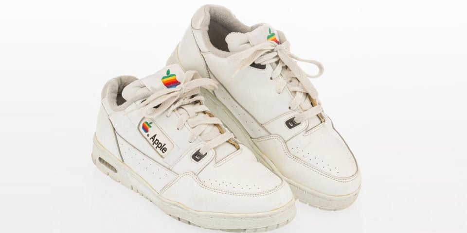 Ein Paar Anfang der 1990er Jahre speziell für Angestellte von Apple angefertigte Turnschuhe ist in den USA für fast 10.000 Dollar (etwa 9.200 Euro) versteigert worden. Auf den weißen Turnschuhen in Größe 40 prangen Name des Konzerns und das Apfel-Logo in Regenbogenfarben.