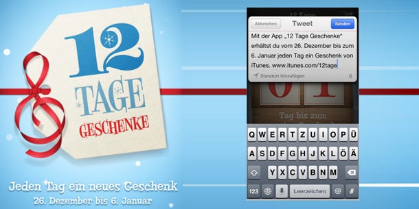 Eine eigene App, „12 Tage Geschenke“ sorgt dank Erinnerungsfunktion dafür, dass man keines der Angebote verpasst. Die kostenlose Anwendung kann ab sofort heruntergeladen werden: