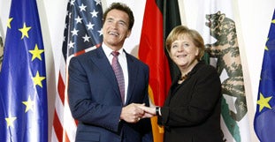 Zusammen mit Angela Merkel eröffnete der kalifornische Gouverneur Arnold Schwarzenegger die Computer-Messe CeBIT.
