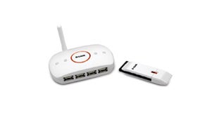 Der Wireless-USB-Hub von D-Link ermöglicht ein Ende des Kabelsalates vom PC zu den Endgeräten. Bis zu vier Geräte - etwa Drucker, Digitalkamera, iPod und Maus, können so gleichzeitig via Funk mit einem PC verbunden werden.