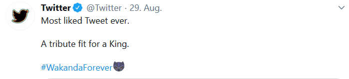 Kurz nachdem der Eintrag von Chadwick Boseman an jenem des Vorgängers von Donald Trump vorbeigezogen ist, wurde der neue Rekord auch von Twitter bestätigt: