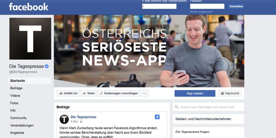 Schlechte Nachricht für Fans von "Die Tagespresse". Das Online-Satiremagazin wird abopflichtig. Das kündigt Gründer Fritz Jergitsch gegenüber dem "Falter" an. Facebook, bisher der wichtigste Verbreitungskanal, bringe nach dem jüngsten Algorithmuswechsel zu wenige Zugriffe, nennt er als Grund für diesen Schritt.