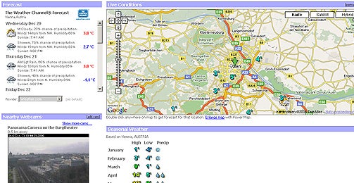 Google-Mashups sind nach wie vor ein Megatrend im Web: Man nehme eines der vielen Google-Features wie "Maps" und verbinde es mit unterschiedlichen RSS-Feeds, Webservices und Datenbanken. Bei WeatherBonk.com hat man Google Maps mit diversen Wetter-Services kombiniert und dadurch eine Live-Wettervorschau mit Webcam-Funktionalität geschaffen.