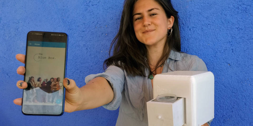 Die von der jungen Spanierin erfundene Blue Box ist ein biomedizinisches Brustkrebs-Testgerät für zu Hause, das eine Urinprobe und einen KI-Algorithmus verwendet, um frühe Anzeichen von Brustkrebs zu erkennen. Das Gerät soll Frauen eine nichtinvasive, schmerz- und strahlungslose, kostengünstige Methode zur regelmäßigen Brustkrebsvorsorge zu Hause ermöglichen. Das Gerät führt eine chemische Analyse von Urinproben durch und sendet die Ergebnisse an die Cloud. Dort reagiert der KI-basierte Algorithmus auf spezifische Stoffwechselprodukte im Urin und liefert der Nutzerin schnell eine Diagnose. Das Gerät ist mit einer App verbunden, die die gesamte Kommunikation mit dem Benutzer steuert und ihn bei einem positiven Testergebnis sofort mit einer medizinischen Fachkraft in Kontakt bringt.