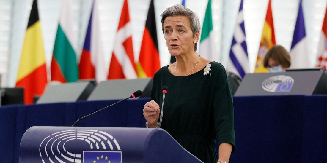 Rückschlag für Nvidia: Die EU-Kommission nimmt die vom den US-Grafikkartenspezialisten geplante 54 Milliarden Dollar (46,5 Mrd. Euro) schwere Übernahme des britischen Chip-Entwicklers Arm genauer unter die Lupe. "Während Arm und Nvidia nicht direkt miteinander in Konkurrenz stehen, ist das geistige Eigentum von Arm ein wichtiger Bestandteil von Produkten, die mit denen von Nvidia konkurrieren", erklärte Wettbewerbskommissarin Margrethe Vestager (Bild).