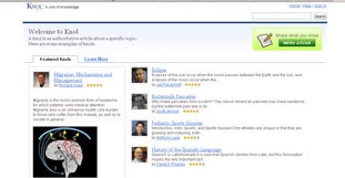 Man betrachte Knol nicht als Konkurrenz, sondern als Ergänzung zu Wikipedia, sagte Google-Produktmanager Cedric Dupont. Die Nutzer könnten schließlich das Expertenwissen auf Knol verwenden, um Artikel auf Wikipedia zu verbessern. Unter den ersten Artikeln auf Knol, das vorerst nur in englischer Sprache verfügbar ist, waren eine Abhandlung eines Professors zu Darmbeschwerden und Ratschläge für Rucksacktouren eines Softwaren-Entwicklers von Google.
