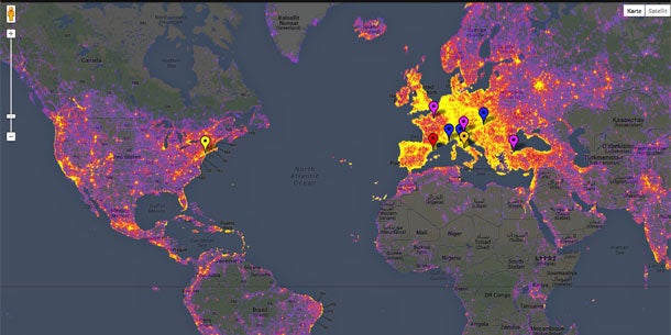 Auf der Weltkarte ist dank Farbabstufungen klar zu erkennen, wo die meisten Fotos gemacht und ins Internet hochgeladen werden. Je heller die Region, umso öfter wird geknipst. Darüber hinaus sind die 10 größten Hotspots mit kleinen Fähnchen markiert. Etwas überraschend ist, dass sich acht der zehn angezeigten Städte in Europa befinden. Die restlichen zwei Orte sind in Nord- und Südamerika zu finden. Doch auch in Japan, China und Australien gibt es Regionen, in denen viele Fotos gemacht werden. Da die Karte interaktiv ist, können User die gewünschten Regionen auch heranzoomen. Das geht sogar so weit, dass bei der größten Zoomstufe die 10 am häufigsten fotografierten Sehenswürdigkeiten innerhalb der ausgewählten Stadt angezeigt werden.