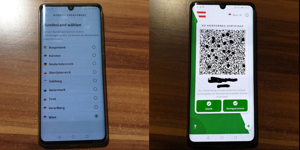 So sieht man auf einen Blick, ob der eigene Grüne Pass den im jeweiligen Bundesland vorherrschenden Regelungen entspricht. Zudem erfährt man, ob man mit seinem aktuellen Zertifikat die Nachtgastronomie besuchen darf. Diese Funktion ist derzeit jedoch obsolet, da die Nachtgastro in ganz Österreich geschlossen hat. Doch das wird sich (hoffentlich) wieder ändern.