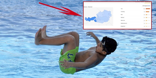 - Die Tiroler leiden offensichtlich am meisten unter der Sommerhitze: Die Begriffe Abkühlung, Schwimmbad und Badesee wurden in Tirol am meisten gesucht.
