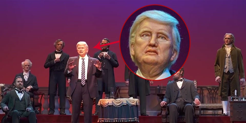Der im Jänner ins Amt gelangte Präsident reiht sich in der Hall of Presidents in die Reihe seiner 44 Amtsvorgänger. Wie im echten Leben trägt der Robo-Trump einen dunklen Anzug und eine überlange Krawatte. Der Trump-Roboter schickte nach einer kurzen Einführung von George Washington Grußworte an das Publikum: