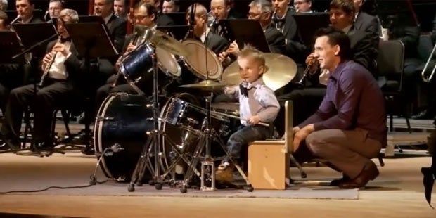 Auf Facebook sorgt derzeit ein dreijähriger Bub für Furore. Er ist auf einem Video zu sehen, bei dem er ein russisches Symphonieorchester am Schlagzeug begleitet. Dabei zeigt sich, dass der Kleine aufgrund seiner Virtuosität offenbar das Zeug zu einem großen Drummer hat.