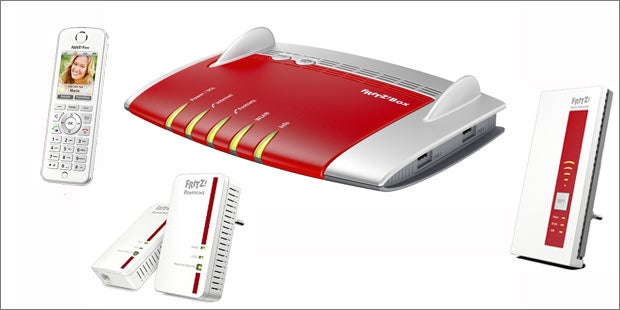 Set mit FRITZ!Box 7490, WLAN-Reapeater 1750E, Powerline 1000E und FRITZ!Fon C4.