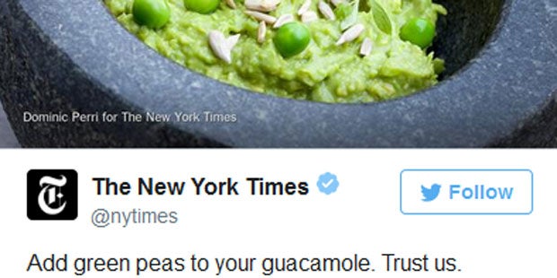 Mit einem Rezept für Guacamole hat die "New York Times" kürzlich im Internet einen Sturm der Entrüstung losgetreten und sogar Kritik von US-Präsident Barack Obama eingefahren. Die grünen Hülsenfrüchte verschafften dem in den USA beliebten Avocado-Dip eine "intensive Süße und stückige Struktur", schrieb das Blatt in seinem Rezepte-Teil. Die Erbsen verhinderten außerdem, dass der Dip sich braun färbe.