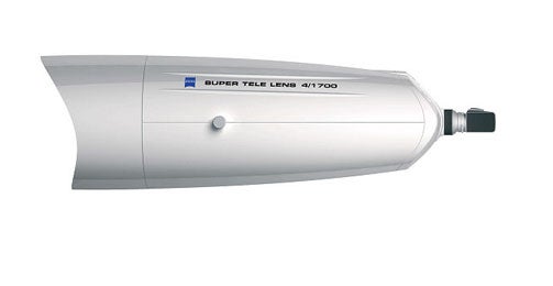 Schon ein 300er-Teleobjektiv wirkt an einer Digital-SLR beeindruckend, aber das hier stellt alles in den Schatten: Das Zeiss Apo Sonnar T* 4/1700 bietet 1.700 Millimeter Brennweite bei einer Lichtstärke von F4.0 und besteht aus 15 optischen Elementen in 13 Baugruppen.
