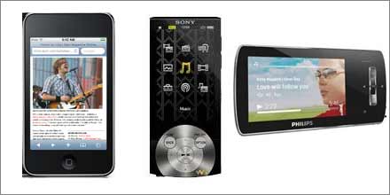 Wer gezielt navigieren will, bestimmte Titel suchen oder Ordner durchforsten, braucht ein Display und greift deshalb besser zu den größeren Geräten – zu den Musik- und Videospielern. Am besten schnitt der knapp „gute“ Philips GoGear Muse (2,5) ab, welcher für 144 Euro erhältlich ist. Die Player Samsung YP-R1 (2,6), Sony NWZ-A845 (2,7) und Apple iPod nano (2,8) liegen dicht dahinter, hier reichte es aber nur für ein „Befriedigend“.