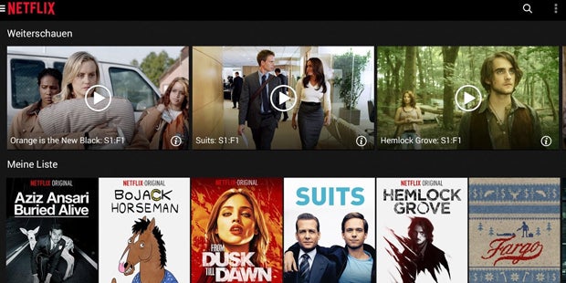 App zeigt einen ersten Blick auf das Programmangebot. Bild: (c) Netflix