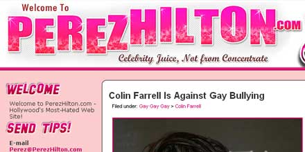 www.perezhilton.com Blog, der hinter die Kulissen der Hollywood-Stars blickt.