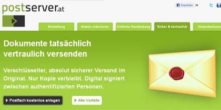 Das Webangebot "postserver.at" startet ab sofort seinen elektronischen Zustelldienst und ermöglicht, dass Briefe nun auch über das Internet verschickt und empfangen werden können. Nutzer können ihre Briefe also ganz bequem von zuhause aus versenden oder öffnen und ersparen sich so den Weg zur nächsten Postfiliale. Des Weiteren ist man auch völlig unabhängig von der Uhrzeit. Denn die E-Briefe können immer und überall versendet/geöffnet werden.