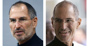 Im Bild oben (von links oben nach rechts unten): Steve Jobs im Juli 2000, November 2003, September 2005, September 2006, Januar 2007 und September 2008