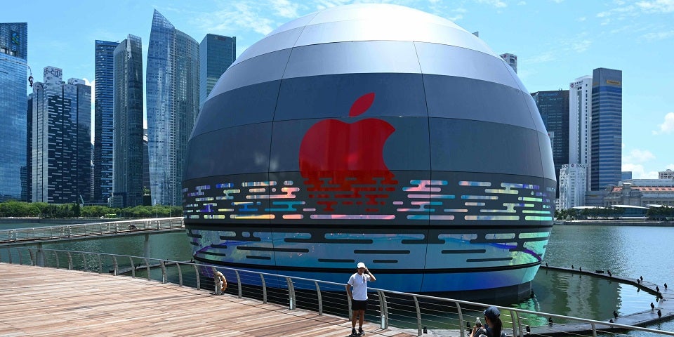 Apple eröffnet in Singapur nämlich ein Geschäft, das es bei dem Konzern in dieser Art und Weise noch nie gegeben hat. Zum einen steht der neue Apple Store direkt auf dem Wasser, zum anderen setzt er auf eine Kugelform, die von außen (noch) keine Blicke ins Innere erlaubt. Aktuell ist die Kugel nämlich noch mit einer Folie beklebt. In der Nacht sticht das rot beleuchtete Apple-Logo besonders hervor. Im Inneren dürften die Arbeiten mit Hochdruck laufen.