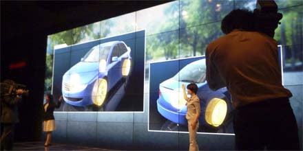 um großformatige Leinwände zu ersetzen. Auf einer Vorführung zeigte Sharp 30