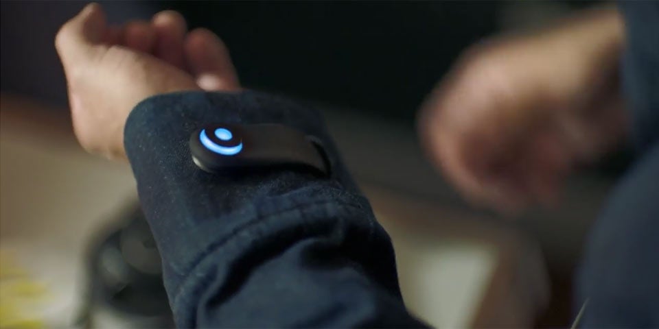 Leitfähige Fasern und Knopf am Ärmel erlauben Bedienung ohne Smartphone.
