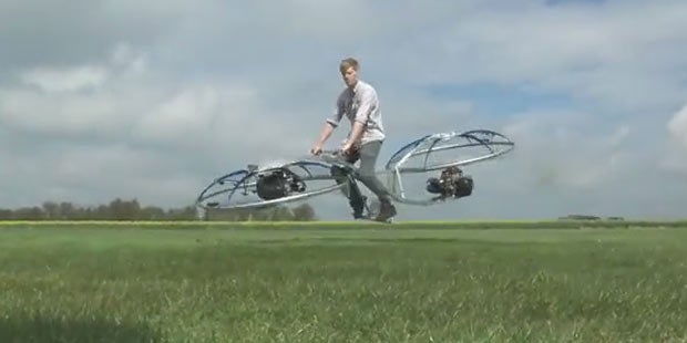 Nachdem zuletzt ein Stuntman mit einem funktionsfähigen Hoverboard für Furore sorgte, gibt es nun schon wieder ein neues, noch kurioseres Fluggerät. Konkret hat sich der britische Tüftler Colin Furze eine Art fliegendes Fahrrad, quasi ein Hoverbike, gebaut.