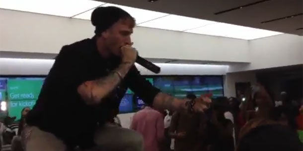 Wie The Verge berichtet, zuckte der Musiker während dem Konzert vollkommen aus. So begann er kurz nach dem Start "Fuck these computers" zu rappen, und sprang zwischen bzw. auf den ausgestellten Rechnern (Tablet, Laptops, etc.) herum. Dabei sollen einige der teuren Geräte auch beschädigt bzw. zerstört worden sein. Obwohl "Machine Gun Kelly" von den Microsoft-Angestellten aufgefordert wurde, mit dem Singen aufzuhören, machte er einfach weiter. Dies ging solange bis ein Mitarbeiter den Strom abdrehte. Gleichzeitig wurde die Polizei zu Hilfe gerufen. Dies war auch notwendig - es brauchte nämlich drei Polizisten und mehrere Microsoft-Angestellte um den durchgedrehten Rapper aus dem Store zu befördern.