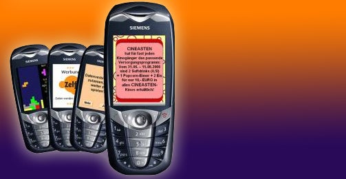 Bisher war Werbung eher auf den großen Bildschirmen zuhause: Im Kino, im Fernsehen und auf Plakaten. Nun hat die Werbebrache aber ein neuest Vermarktungstool in den kleinsten aller Displays gefunden gefunden - In Zukunft soll jedes Handydisplay mit Banner-Werbung wie im internet zugepflastert werden - ob der User das nun will oder nicht!