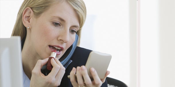 Beim Büro-Make-up sollte man grundsätzlich einen Gang zurückschalten. Entweder man betont die Augen oder Lippen - aber bitte in Maßen!