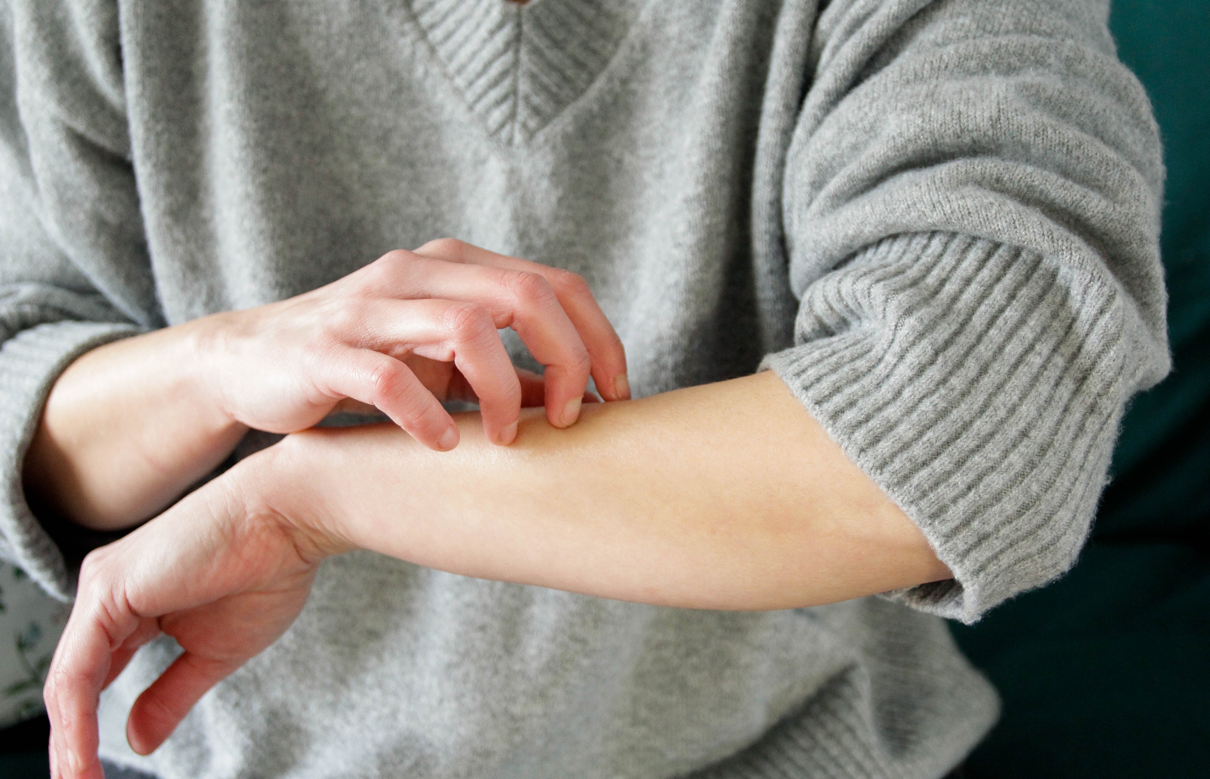 Trockene, rissige, rote und vor allem juckende Haut ist typisch bei Neurodermitis. Diese chronisch-entzündliche, nicht ansteckende Hauterkrankung kann sich z. B. an Händen, Armbeugen, Beinen oder im Gesicht manifestieren. Die Symptome treten dabei in Schüben auf – sie werden meist ausgelöst durch Allergene wie Pollen, Hausstaub oder chemische Substanzen. Verursacht werden kann atopische Dermatitis etwa durch ein fehlgeleitetes Immunsystem oder Störungen der Hautbarriere und des Mikrobioms.