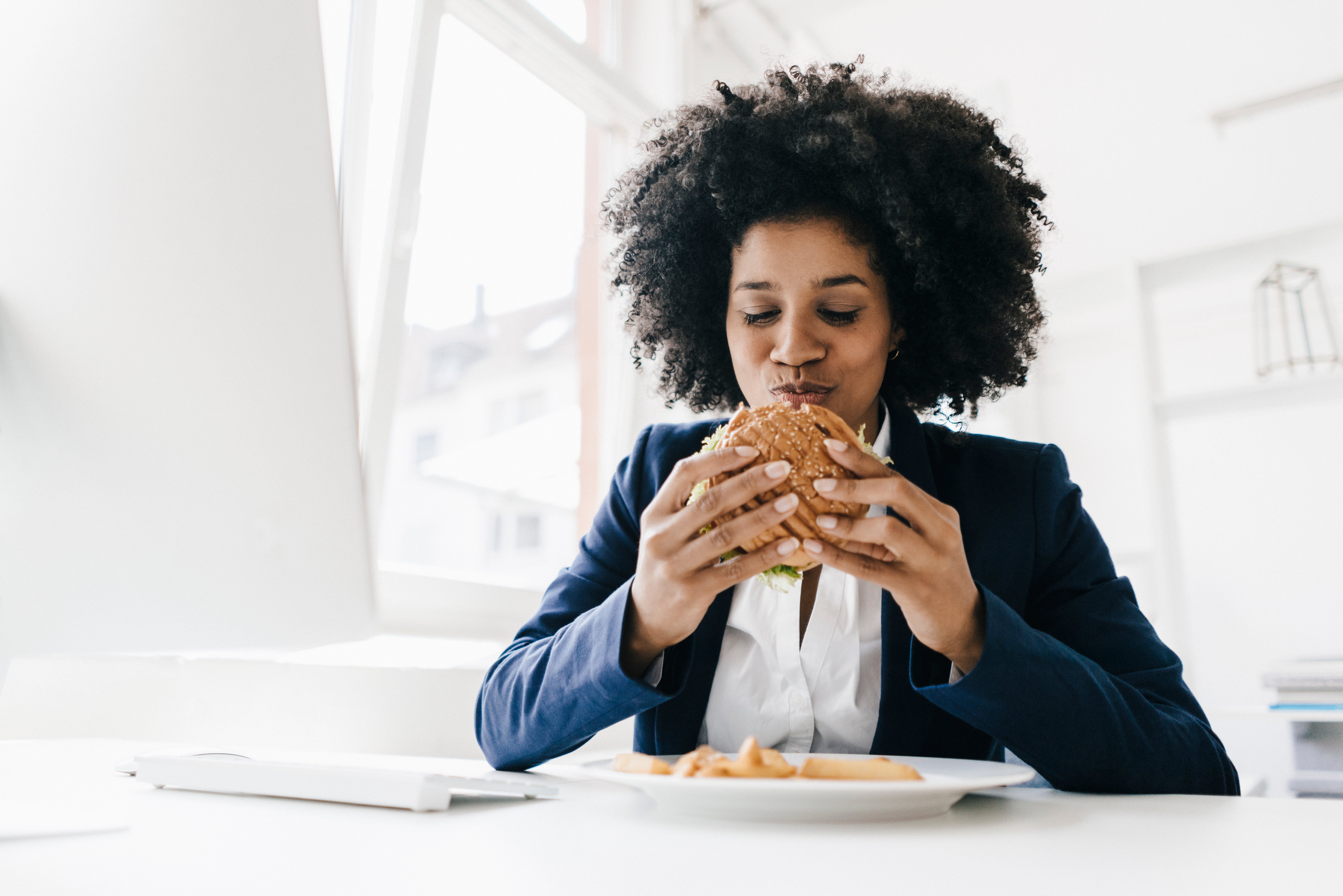 Gehören Sie auch zu den Kandidaten, die schnell einen Snack auf dem Weg zum Schreibtisch herunterschlingen? Auch wenn es auf der Arbeit stressig ist, sollten Sie sich Zeit für Ihre Mahlzeiten nehmen. Bei einer gesunden und bewussten Ernährung ist nämlich auch gründliches Kauen und langsames Essen wichtig. Dadurch bemerkt man schneller das Sättigungsgefühl und schlingt nicht unnötig große Portionen in sich hinein.