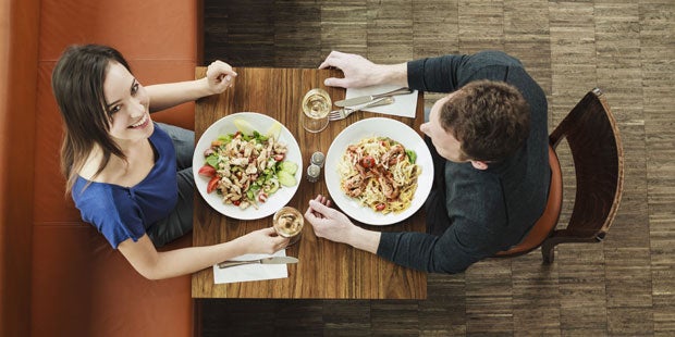 Seien Sie bei der Restaurant-Begleitung wählerisch! Wissenschaftler behaupten nämlich, dass die Begleitung großen Einfluss darauf hat, was wir essen. Wenn Sie mit einem Burger-Liebhaber essen gehen, werden Sie also selbst bestimmt ungesünder essen, als wenn die Wahl auf eine gesundheitsbewusste Begleitung fällt.