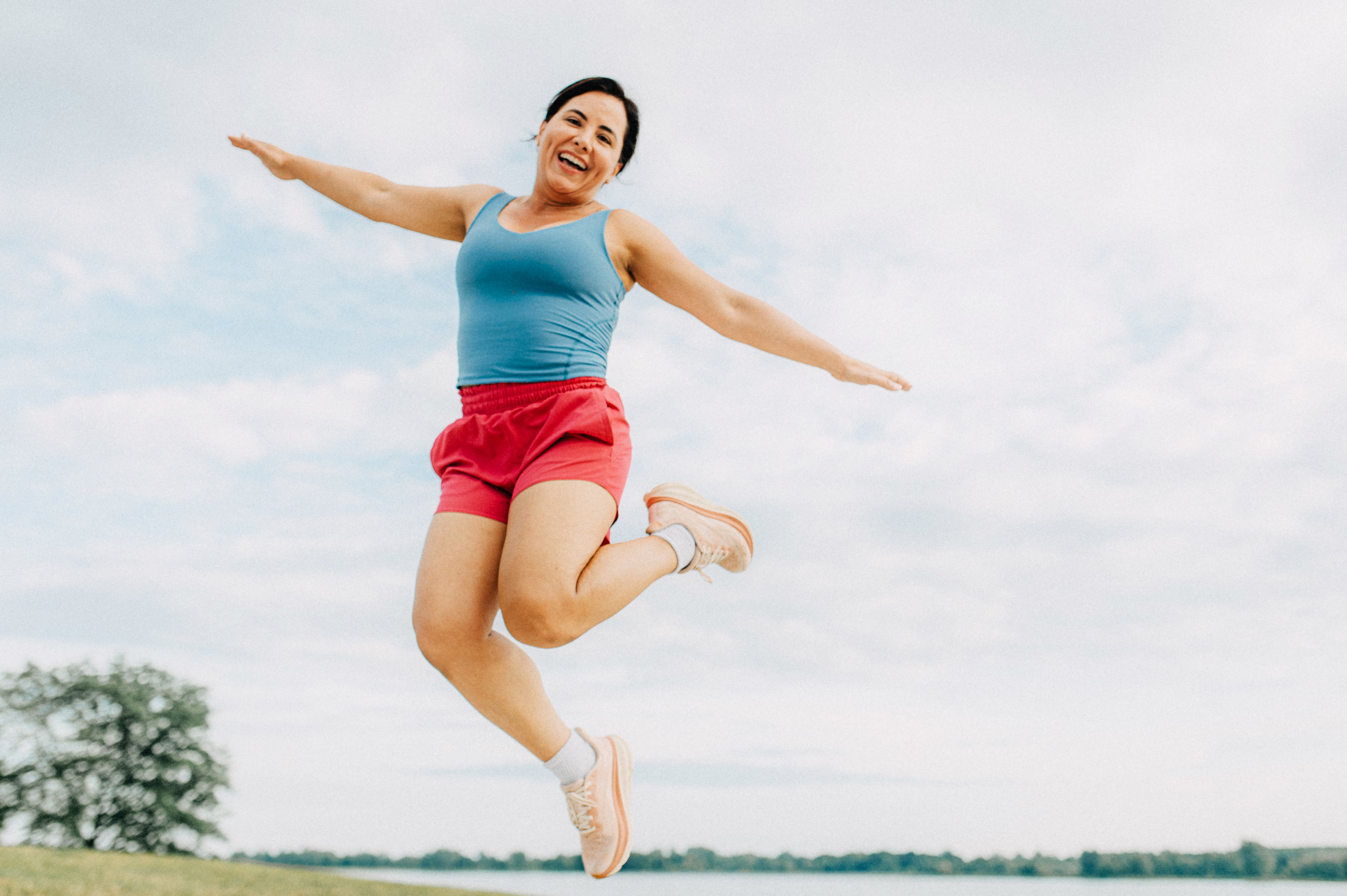 Lymphatic-Jumping-Übungen lassen sich unkompliziert in den Alltag integrieren. Eine besonders sanfte Variante ist das Hüpfen auf der Stelle, bei dem Sie leicht aus den Fußgelenken federn, die Knie nur minimal beugen und auf eine weiche, kontrollierte Bewegung achten. Eine weitere Möglichkeit stellen sogenannte High Knees dar, bei denen Sie in lockerem Tempo abwechselnd die Knie anheben.