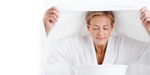 Salz-Inhalation bei verstopfter Nase: Inhalieren befreit verstopfte Atemwege und lässt Schleimhäute abschwellen. So geht’s: 1 Teelöffel Meersalz mit 1 Liter kochendem Wasser übergießen und die Dämpfe unter einem Handtuch ca. 10 Minuten lang tief einatmen. Am besten dreimal täglich.